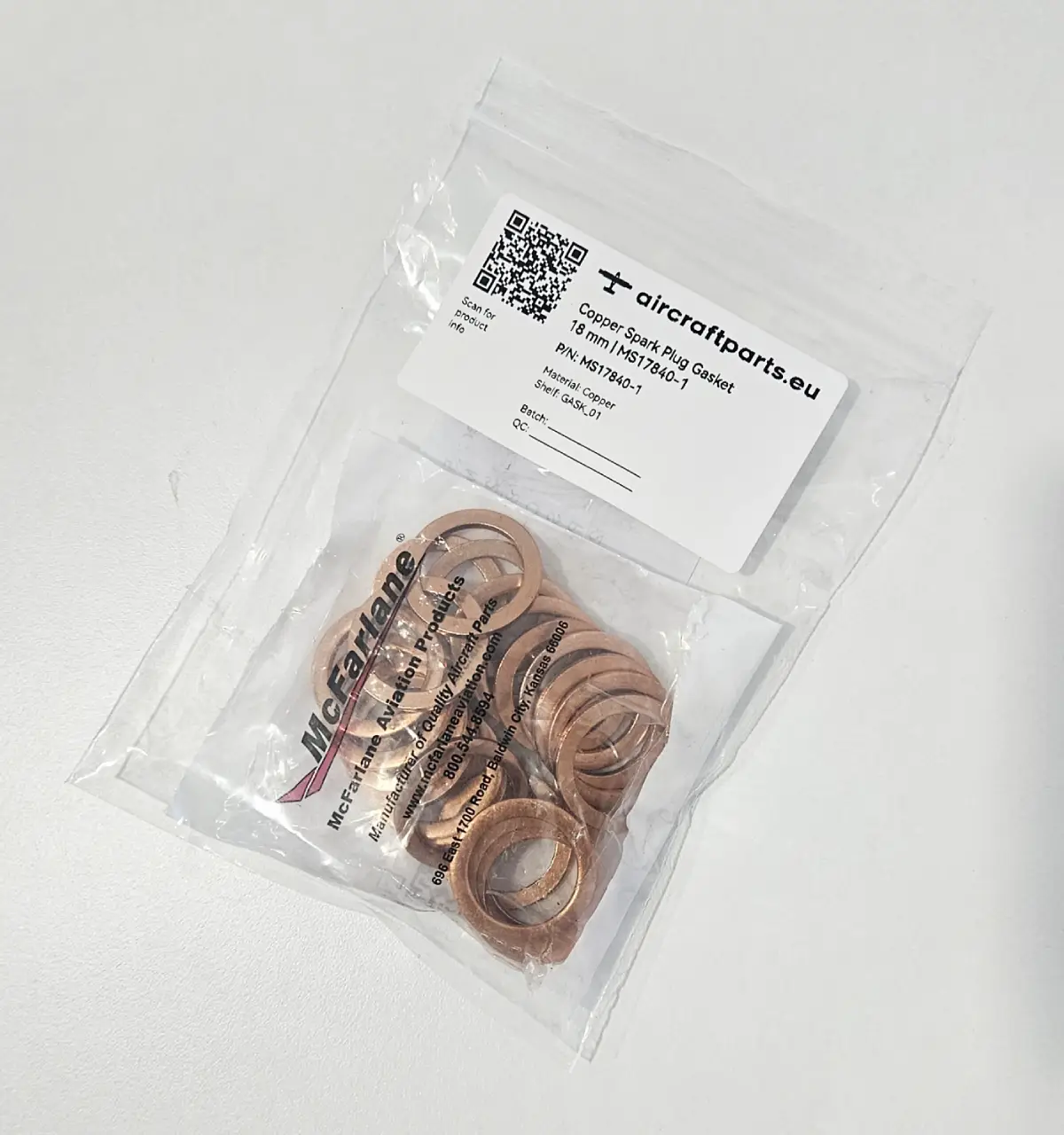 The MS17840-1 is an 18mm copper crush gasket used with aviation spark plugs in certified piston aircraft engines.