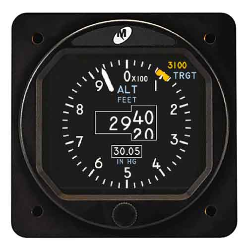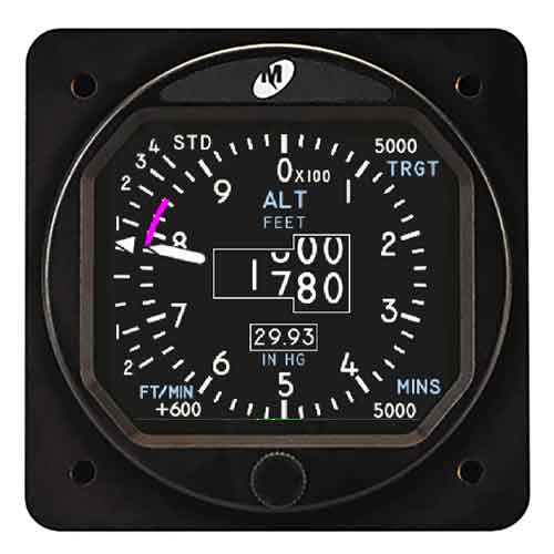 - User-selectable features: vertical speed indicator, six-second vertical trend, altitude target, approach minimums alert, barometric setting