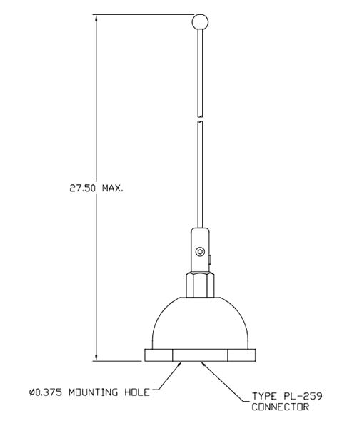 The AV-3 is vertically polarized and provides an omnidirectional radiation pattern for consistent signal coverage around the vehicle. The whip element is field tunable by trimming to length, enabling the antenna to be optimized for the desired operating frequency.