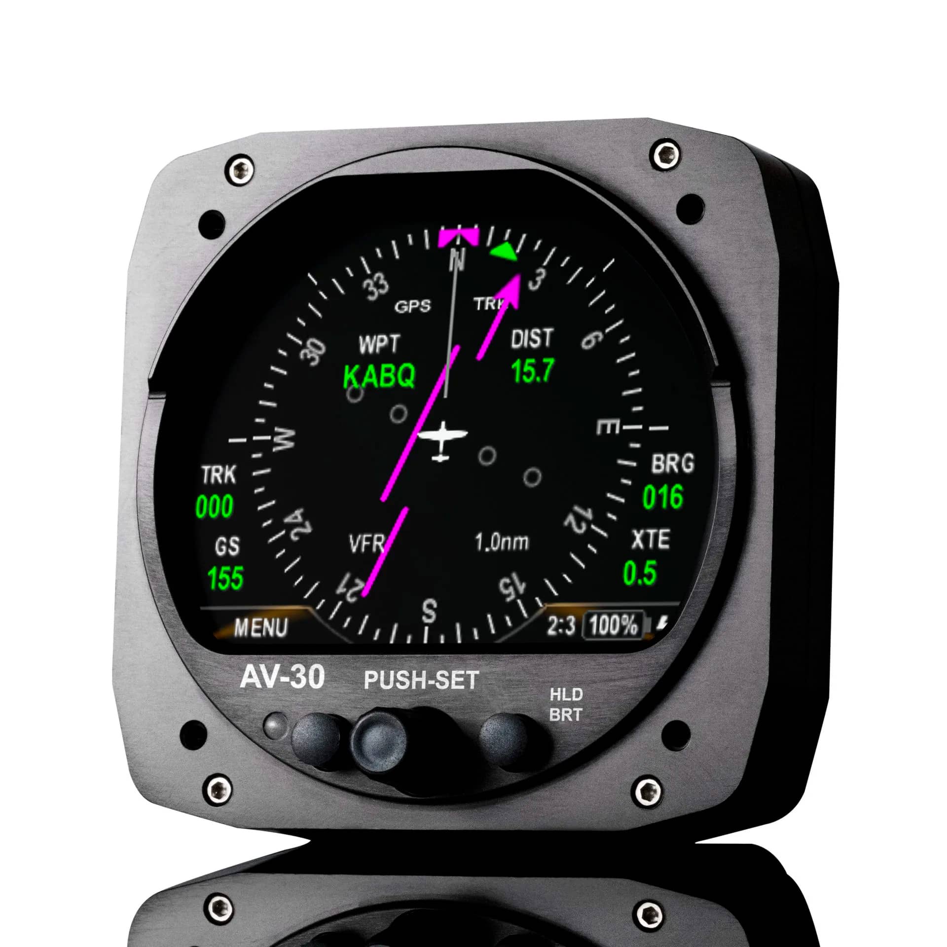 When connected to an external magnetometer (such as the uAvionix AV-Mag), the AV-30C provides stabilized heading information, enabling it to replace a conventional directional gyro. The instrument can also interface with approved GPS sources to display ground track and additional navigation data.